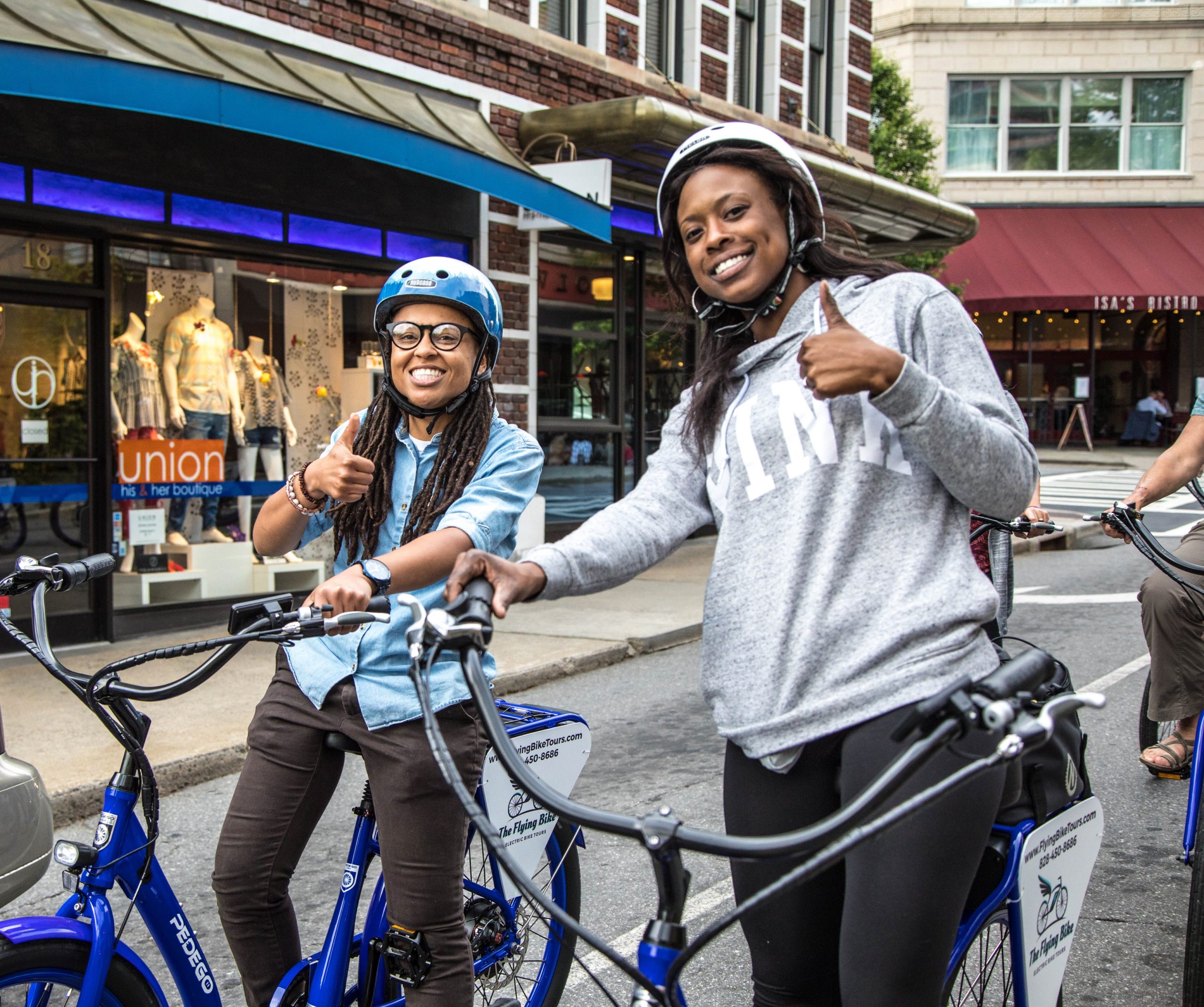 In addition to leading awesome tours, The Flying Bike is proud to rent out our fleet of Pedego electric bikes. Whether you want to explore Asheville on your own or you want to keep enjoying our electric bikes after the conclusion of your guided tour, our electric bike rentals are a great option! Renting a bike gives you the flexibility to see the city at your own pace and set your own itinerary. The electric pedal assist and throttles on our bikes make it easy for folks of all fitness levels to enjoy a ride and wander as far as they like! As locals and fans of our own great city, we’re happy to provide you with maps and recommendations for things to do, places to explore, and breweries and restaurants to stop in to get a taste of Asheville.